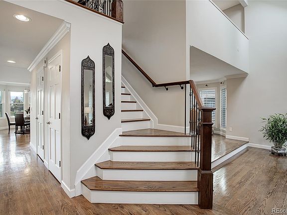 Nestled on the prestigious 14th fairway of the Hyland Hills Golf Course, this stunning 4-bedroom, 3-bathroom home offers unparalleled views of the lush golf course and majestic Rocky Mountains. With a perfect blend of luxury and comfort, this home is an entertainer's dream and a peaceful retreat. Upon entering, one's greeted with a vaulted foyer and extensive hardwood floors throughout the main level. A beautiful wood staircase is paired with custom, wrought iron railings adding a touch of elegance and sophistication. The gourmet eat-in kitchen is a chef’s dream featuring stainless appliances, Sub-Zero refrigerator, granite counters, double ovens, gas cooktop, and a large island with bar seating. The adjoining family room provides easy access to the spacious deck, perfect for al fresco dining or extended outdoor living. An expansive wall of windows adorns the open concept kitchen and family room highlighting the spectacular views from every vantage point. There is also a formal living and dining room extending the living and entertaining spaces. Enjoy cozy nights by one of two gas fireplaces, one in the living room and another in the family room, creating the perfect ambiance for any occasion. The master suite boasts a private deck with stunning mountain views, a generous walk-in closet, and an en-suite bathroom with dual vanities, soaking tub, and a separate shower. A loft and three additional well-sized bedrooms provide plenty of space for family, guests, and a home office. Step outside into the peaceful, beautiful backyard to enjoy our wonderful Colorado weather and stunning mountain sunsets. Whether you're hosting a BBQ, enjoying a quiet evening, or watching golfers on the fairway, this backyard is the ultimate space to relax and enjoy the outdoors. The home also includes a three-car garage and an unfinished basement, waiting for your personal design. With its prime location, stunning views, and luxurious features, this home is truly one-of-a-kind.