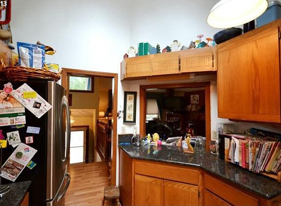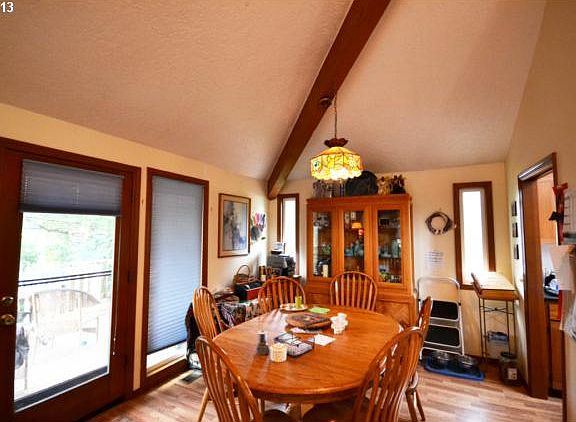 Tigard split level home! Soaring vaulted ceilings w exposed wood beams in upper level. Hdwd flrs & ceiling fans thruout. Fmly rm incls cozy frplc. Door to deck in dng rm. Ktchn boasts granite cntr, blt-in microwave, & eat bar w pass-thru. Mstr suite incls priv bath and balcony. Blt-in bookshelves & gas stove in fmly room. Large deck & large fenced yard. Serene water feature & beautiful landscaping. Bring the family home today!