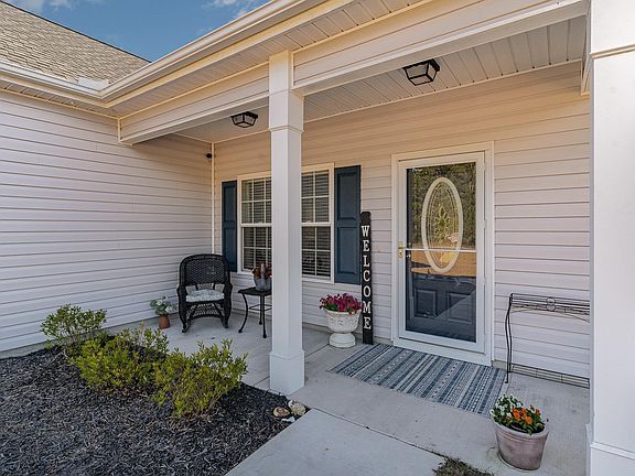 Welcome to this beautifully crafted 3-bedroom, 2-bathroom home, built in 2023 and situated on a spacious 0.76-acre lot in the sought-after Mt. Pillar Estates. From the welcoming front porch to the thoughtfully designed interior, this home combines modern elegance with everyday functionality. As you step inside, you'll find a formal dining room with a tray ceiling and arched entryway, flowing seamlessly into the open living area featuring vaulted ceilings and a ceiling fan. The kitchen is equipped with granite countertops, stainless steel appliances, a breakfast bar, recessed lighting, and has a charming breakfast nook. Sliding glass doors from the nook lead to a screened-in porch and a large concrete patio with a shaded area and a fire pit, perfect for outdoor gatherings. The owner’s suite is situated in the rear of the home with vaulted ceilings, a ceiling fan, a spacious walk-in closet, and an ensuite bath that includes double sinks, a large vanity, a walk-in shower, a linen closet, and plenty of natural light. Two additional bedrooms, both with ceiling fans, are conveniently located near the guest bath. A large pantry is located in the laundry room. Luxury Vinyl Plank (LVP) flooring runs throughout the living areas and bathrooms, while carpeting adds comfort to the bedrooms. The two-car garage features an epoxy-coated floor, built-in shelving, and pull-down stairs for attic storage. The outdoor space is impressive with a fully fenced yard, an irrigation system, and a 10x10 shed equipped with electricity and water. This home offers the tranquility of small-town living while being just minutes from downtown Loris, the Nature Park, shopping, dining, and medical facilities. Combining modern design with exceptional functionality, this home is the perfect place to live, entertain, and relax. Schedule your showing today!***Be sure to ask about special interest rate***