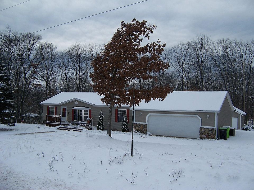 Large beautiful home on 1.21 acre rural setting, yet close to schools and town. Five Bdrms. (one non-conforming), three Baths. Full finished lower walkout level consists of two bdrms., bath, family room, laundry, and four storage closets. Large concrete patio, fenced garden, fenced dog run. Main level features master suite, two guest bdrms., bath. Living area features a new stone fireplace with nat. gas logs ('21), cathedral ceilings, bay window and patio door to huge rear deck. Attached garage is finished and heated ('21). Home is heated by nat. gas, with central air. Second garage is 16 X 16 with concrete floor, o/h door, and two interior lofts for an abundance of storage. Rear view looks over wooded acreage. This beauty is a pleasure to show!