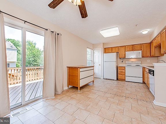 Brick front end unit in sought after New Town. The large living room offers plenty of natural light from the front and side windows, carpeting, coat closet, and off the living room is a powder room with a pedestal sink. The kitchen has tiled floors, pantry, movable island, and a bump out to allow for extra table space in the breakfast area. Sliders from the kitchen open to an 18x15 deck, and a large yard that is surrounded by a privacy fence. The upper level offers a master suite with adjoining bath, and a large walk-in closet. There are 2 other ample size bedrooms, and a full bath with a shower/tub combination. There is a large recreation room, a 19 x10 utility /laundry room with plenty of space for storage, and a rough-in for a full bath in the lower level. HOA includes pools, tot lot, dog run, and front and side yard maintenance. There are 2 assigned parking spaces. Easy access to 795, shopping, restaurants, and walking trails.