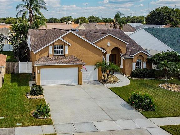 Picture Perfect! Don't miss this opportunity for a 5 bedroom home with 4 full baths. This beautifully updated home boasts wood look tile throughout, new carpet in bedrooms, newer appliances (one year old), and an updated kitchen with 42" oak cabinets. Downstairs you will find the master suite, two bedrooms with a jack and Jill bathroom, third bedroom and full bath, as well as a 4th bedroom or office. Upstairs you will find a bonus room with a full bath and closet (can be 5th bedroom). AC units upstairs and down are both 4 years old. Sparkling pool as well as deck resurfaced 4 months ago. Water heater 2017. Roof 2014. Exterior paint 2015. Reverse osmosis drinking water filter. Hurricane shutters for entire house including sliders to completely enclose the patio. The house has had regular termite prevention, new smoke detectors, and low voltage landscape lights.