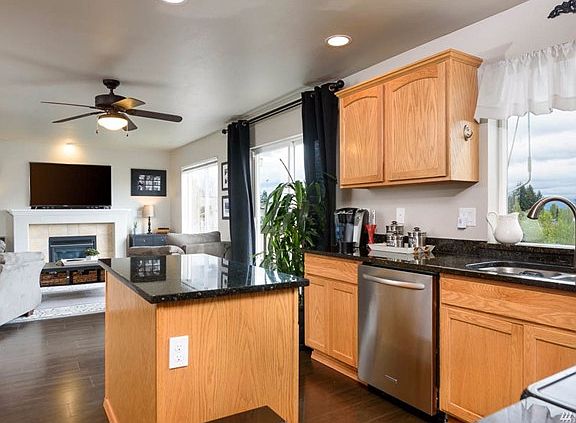 Ready for move in today! Great layout with 2 stories with full walkout lower level with room for additional BR, office or entertainment. Fully Fenced large yard ready for BBQ party or play time. A sunrise greets you with Territorial & mountain views on relaxing deck or patio. Garden shed stays. Interior finishes and floor plan to get excited about. Location close in with easy access to I-5 & I-405, Boeing, local parks & shopping.