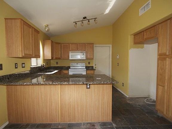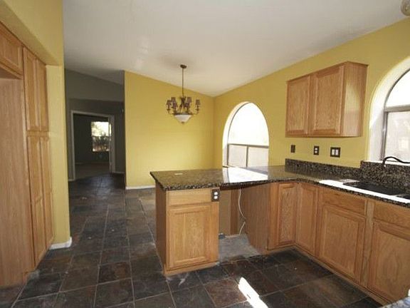 Designer touches throughout this 3bed/2bath Mesa home! Granite countertops throughout, great room style living, vaulted ceilings, 2 car garage & alarm system. Master suite boasts french doors, private door access to backyard, separate shower & jetted tub. Unique double sink basins & large walk in closet. Spectacular private yard for entertaining...oversize covered patio with ceiling fan & mature landscaping. To be rent ready, unit needs: full repaint, dishwasher, refr...