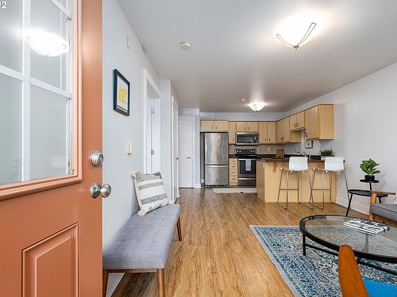 BOM no fault of seller/condo. Spotless ground floor condo located in private section of Bldg 2, away from main streets. Patio w gardening space. Newer appliances, windows, flooring, and A/C. Open plan living room and kitchen, plenty of storage. Deeded off-street parking spot. Easy access MAX transit, shopping, I-84 and 205. Low HOA fee includes water, sewer, garbage, exterior maintenance, and management. No rental cap. Extensive interior and exterior work makes this feel like a brand new condo!
