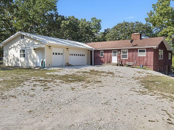 You will love the privacy in back yard of this home on a beautiful flat acre with trees. This home boasts of a NEWER, 3 car, oversized, garage with concrete floor and is heated & cooled with mini-split. Two bedrooms (with room for another), two bathrooms, and a glassed in living area for plants. Also has a wood burning fireplace, because winter will be here before you know it! A huge crawl space under the house, great for storage! 10 minutes to Branson Landing and 5 minutes to Bull Shoals Lake. RV site, county water, but has its own well, too. Circle drive-lots of parking. Convenient to shopping and entertainment.