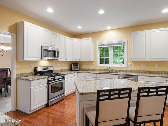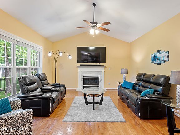 Welcome to 9817 White Blossom in Sought after Villages of Springhurst subdivision. Four Bedrooms & Three full baths plus a half bath in this wonderful home that has been well maintained & has a well-designed floor plan. The Gracious Foyer opens to Living Room & Dining Room overlooking backyard. Eat-in Kitchen with loads of white cabinets & island has updated granite countertops. Kitchen opens to family room with Fireplace & triple window overlooking lush fenced backyard with large deck & patio area perfect for hosting large gatherings & for loads of outdoor relaxation & enjoyment. Convenient & useful first floor office plus first floor laundry. Primary suite with spacious spa bath and walk-in closet. Three additional bedrooms and full bath complete the second floor of this lovely home. Basement offers a media room and built-ins, flex room currently used as a non-conforming guest bedroom with adjoining full bath plus plenty of storage. Irrigation system, with optional app control, in yard and gutter guards for ease of maintenance.
