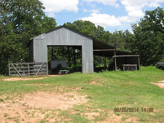 Cute cozy 2 bedroom home 2 bath home sits on 20 acres upon a hill behind a tree line. Very secluded in the summer. Long driveway, barn, small pond & storm shelter.