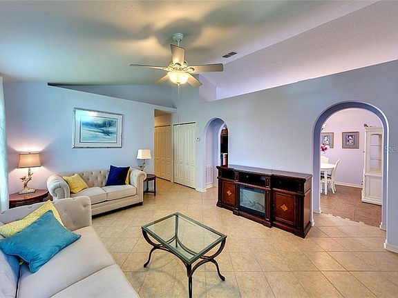 Discover all the virtues of this Kensington model 3 bedroom/2 bath home in the charming, quiet community of Gillette Grove. A few of the amazing features include vaulted ceilings, arched doorways and tiled flooring throughout. The Kitchen offers a breakfast bar, attractive wood cabinetry, stainless steel appliances and cafe area for dining. Enjoy morning coffee on the patio just off the kitchen . . . a great way to start your day! Master Bedroom features an en-suite bathroom. Sliding doors lead to a cozy covered, screened lanai to relax after a day of work sipping a glass of wine or enjoy the serene butterfly garden. Fully fenced yard (attractive vinyl fencing) is perfect for your 4 legged friends, privacy and entertaining friends and family . . . fire up the barbecue! This home is centrally located with easy access to I-75, I-275, St Petersburg, Tampa, Sarasota. You are never far from great restaurants, world class shopping, beaches, and entertainment. Low HOA fees make this home affordable for 1st Time Homeowners, families or singles and just about anyone would love this home. Welcome Home to your slice of Florida paradise!