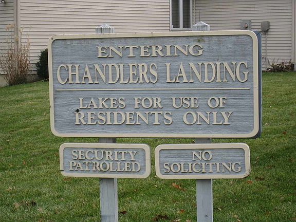 Fantastic new listing in Chandler's Landing! This four bedroom home is located on a cul-de-sac with a gorgeous water view. Enjoy the long winter months by ice skating on the pond and the warm weather by swimming, fishing and paddle boating! This quality home has oak floors, solid wood doors and ample oak cabinetry in the kitchen and baths. Enjoy great water views from the living room with cathedral ceilings, balcony from the second level, a fireplace and large windows. Access the upstairs through the home or from a back stairway from the garage for additional privacy. The backyard offers a large deck overlooking the water. This home is in need of repairs and TLC but when it is brought back to it's splendor, it will be a showcase!