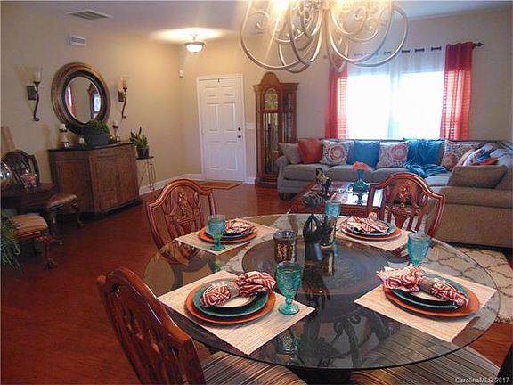 If you love entertaining, you will love this beautifully designed home. Open floor plan with family room built ins housing surround sound. Music and movies right from the ceiling! Screened patio that opens up to a flat fenced in yard. Upstairs has a huge loft. Master bedroom is large enough to fit king size bedroom and sitting furniture. Low HOA fees. Located mins from shopping/restaurants and 485 to 77 and 85! Refrigerator stays. A/C less than 5 yrs old. Home Warranty and $2000.00 closing cost.