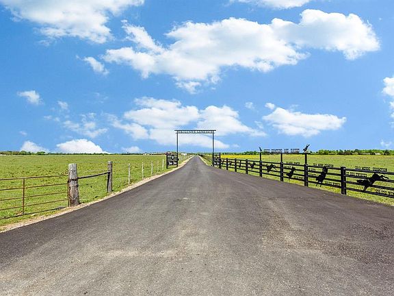 Extraordinary opportunity to experience history and the best of country living. This property was home to the Jaynes Gang that are renowned bucking bull trainers. The home rests on a setting with open skies, starry nights and where the heart beats proudly. It is fenced & cross fenced and Unrestricted. Private gated entrance leads to a circular drive and beautiful 2-Story home with covered front and back Porches. Inside, find crown molding, cased windows, designer wood floors, custom light fixtures. Large gorgeous Kitchen with Island & Kitchen-Aid appliances. Large bedrooms. Upstairs Media Room with fully finished Kitchen. Incredible back Porch with Dacor grill and fireplace. OPTION 1; bring your HORSES. For a modest additional price, you can get up to 2-acres of pasture to board. OPTION 2; relocate your OFFICE here for an additional price