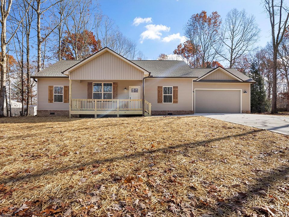 Discover the perfect blend of modern comfort and classic charm in this stunning modern ranch home. Nestled on a tranquil, dead-end street, this spacious half-acre lot offers privacy and tranquility. The open-concept living space, featuring a gourmet kitchen with granite countertops and stainless steel appliances, is perfect for entertaining. The split bedroom layout provides ample privacy, and the oversized two-car garage offers plenty of storage. The large mudroom, with its convenient drop zone and laundry area, adds to the home's functionality. Relax on your rocking chair front porch or unwind on the private back deck while enjoying the serene wooded backyard. Don't miss this opportunity to own a beautiful home in a peaceful neighborhood.