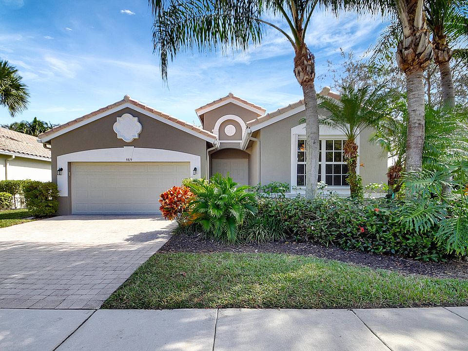 This corner-lot home boasts 2 bedrooms plus a den/office/3rd bedroom, a spacious Great room, and a Granite eat-in kitchen with dark wood cabinets, breakfast bar, separate dining area, and a sunny breakfast room! The master bedroom features tray ceilings, and the master bath includes a Roman tub and separate shower stall. Enjoy the outdoors on the spacious covered and screened Lanai overlooking a private backyard.Bellagio is a 24-hour gated and guarded community spread across 560 acres, with 1100 homes. The community offers a 36,000 sf Clubhouse featuring a Grand Ballroom, indoor and outdoor pools, a fitness and aerobics center, 10 Har-Tru tennis courts, card rooms, a Cafe, billiards, and much more!