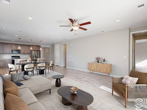 Gently lived-in newer home, move-in ready. Small ranch located in a cul-de-sac in Berthoud's Rose Farm Acres. Floor coverings are all hard-surface allowing for easy cleaning and a nearly dust-free environment. Great open floor plan for entertaining. Kitchen features a large center island, a pantry and ample cabinets. In addition to the three bedrooms there is a nice sized office at the front of the home. The back yard is fully wood-fenced with small grid wire fencing to keep even the smallest dog in the yard. It is nicely landscaped with a minimum amount of grass and is easily maintained. In addition to the patio, it has a seating area at the back of the yard. All appliances are included: refrigerator, dishwasher, electric range/oven , washer and dryer. The home has a leased solar system installed. A water softener is installed, which Sellers will leave or remove, as the Buyer wishes. Garage has 240 amp service for charging your electric vehicle.