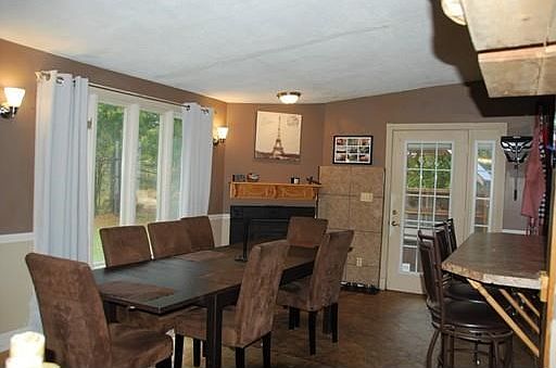 - Din Dscrp: Fireplace, Main Level, Exterior Access, Flooring - Laminate, Window(s) - Picture, Breakfast Bar / Nook, Sunken