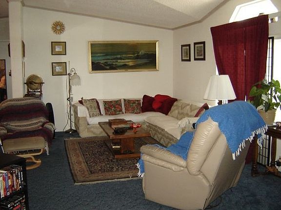 Well-maintained, 1999 double-wide features: 3 bedrooms, 2 bathrooms, carport, patio area, central heat/air, dual panes, gas stove, pantry, dishwasher, laundry area, rear deck, window coverings, master tub/shower, , walk-in closet, linoleum and carpet. Park features: Clubhouse and pool.