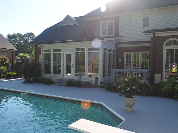 Regal looking home in Carriage Downs. Inground pool, sunroom, sec. sys., irrigation, well, HW floors, vinyl replacement windows, vinyl trim, intercom, central vac! Lots of upgrades. Tankless water heater, newer roof, 5BR, 3.5BA, stainless appliances, double ovens! Upstairs can be another MBR or great for an in law situation, with large den, bath and BR. Built in cabinets, great walk in eve storage. Several wonderful walk in closets, Great KT layout, pantry, desk area, granite!