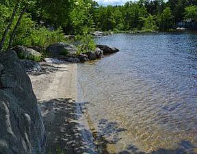 Beautiful spot on an amazing point with 2.4 acres and 360' of water frontage on Great Moose Pond. 2 bed. cottage w/deck, shed and a sandy beach!