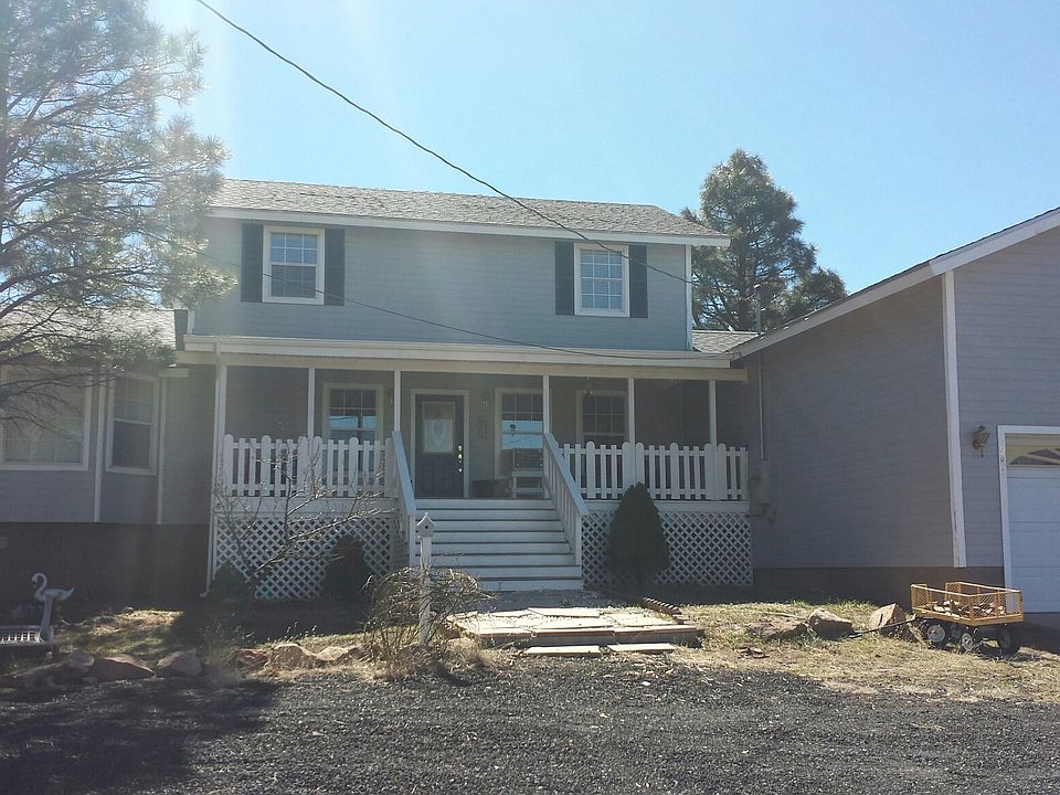 Great horse property with easy access. Good water from a private well. Lots of trees, lawns, fruit trees, Trex decks. Horse barn with shelter. The house is reminiscent of an English home country living within 20 minutes of Show Low. The main house has a lovely large kitchen with center island, and feature fireplace, lots of cabinets and plenty of storage, pantry in the kitchen and large pantry off the laundry room, which benefits from extra cabinetry and a laundry sink. The master bedroom, and one bedroom and bathroom on the ground floor. The large master suite has a walk-in closet, bay window and Jacuzzi tub. 3 good sized beds and bathroom upstairs. The home and grounds have become too much for the original owner to handle on her own & would love to see a new family enjoy this great home.