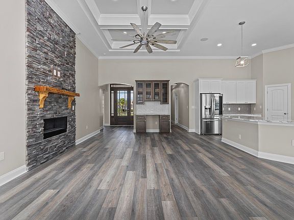 - Features: Tray Ceiling(s), Ceiling Fan(s), Fireplace, Bar