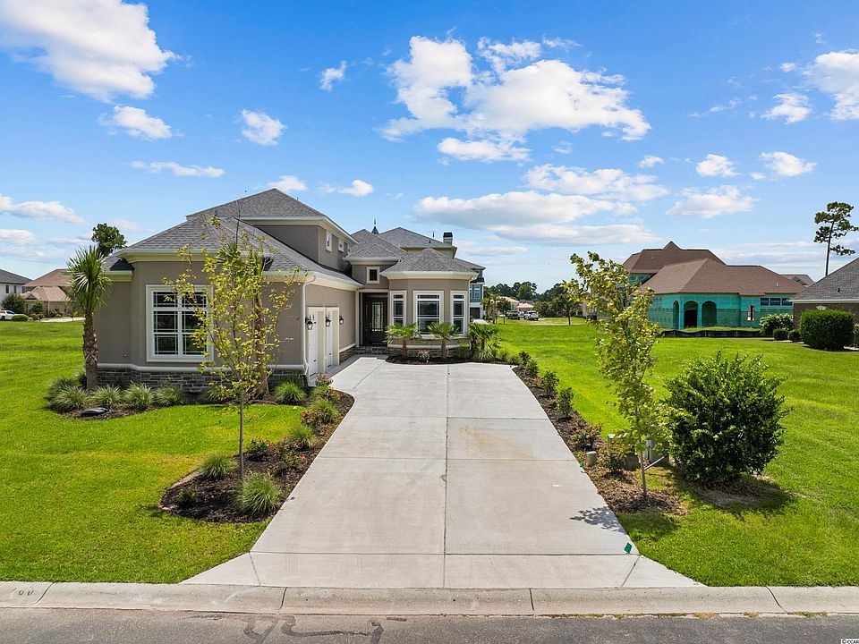 Amazing and Rare Property to own a custom built 4 bedroom and office, 3.5 bath home in the Intercoastal Waterway Community! This 1.5 story home plan is very popular. Four bedrooms on the first floor and bonus room with a private bath is located above the garage .This new construction home features 12’ ceilings,open floor plan, large living room with stone accent gas fireplace,4 panel sliding doors and transom window for extra light , and two(yes two) luxurious master bedroom suites.Kitchen features stainless steel appliances,Gas cooktop,modern backsplash, pantry,spacious breakfast bar,coffe/wine nook.Master suite offers tiled in shower, his and hers bathroom vanities,2 walk in closet and tray ceiling.This floor plan flows from the kitchen with eating area to dining room to the awesome sized living room with gas fireplace and soaring coffered ceiling with 2 speakers and ceiling fan . Exit the rear of the home through the large sliding doors to the massive back tiled floor patio with an outdoor kitchen that overlooks a spacious backyard.This neighborhood allow stucco walls and metal fencing. Plenty of parking space for you and your friends on the extra long driveway and 2-car side load garage with service door and extra storage . This home to be built in the prestigious gated community Carolina Waterway Plantation, located directly on the Intracoastal Waterway provides the luxurious single-family homes featuring Mediterranean designs with modern accents. The community has a private clubhouse ,outdoor swimming pool,children’s pool, tennis courts, playground, boat/RV storage, and boat launch ramp. Carolina Forest area offers award-winning schools, multiple little shopping centers, grocery stores, medical facilities, recreational centers, library, religious centers, bike park with the ultimate convenient living. Buy now and start experiencing relaxing natures beauty with extraordinary sunrises ,sunsets and water views in Carolina Waterway Plantation. Reach out to the listing agent today *** Home was under contract since the construction started in 2021.A lot of upgrades been made to the home since then.Recently the contract fall apart and seller is waiting for the new pictures of the home to be done. All information is deemed correct, but it is the responsibility of the buyers and their agent to verify all information.***