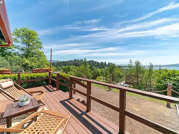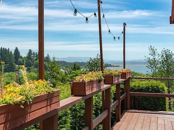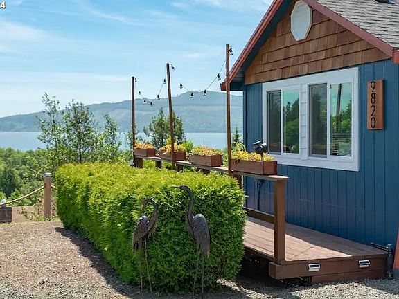 Breathtaking Bay City Cottage resting on an oversized hillside lot, with Tillamook Bay views! Watch the whales swim right out your windows or sit back and relax under the new covered gazebo complete with custom fire place area. Picture yourself here, enjoying the sunsets from the deck, off your very own private street. The grounds are meticulously cared for- complete with engineered retaining wall, lighted pathways, and garden pavers on the walk areas. The home itself is exceptionally well taken care of with tons of upgrades throughout including remodeled kitchen and bathrooms, interior and exterior paint, with charming touches of detailing, and stainless steel appliances. It is nice and bright, feels spacious with separate entry area and big windows! All new in the last few years include sheetrock, roof, windows, siding, flooring, and electrical. The home has so much to list off, it's a truly must see in person listing. Brand new EV charger just out the front. There is also tons of parking for your RV or boat with room to add a shop! Lots of built in storage inside along with a shed steps from the front door.. Being minutes to the beach, fishing, and famous hikes it is the best move in ready picturesque home in a scenic quintessential coastal town! And it is outside of the tsunami zone! Tour today! Ask about furniture staying for a truly turn-key home.