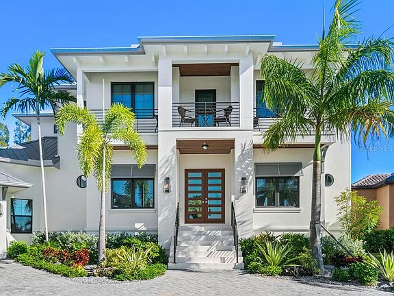 Luxury lifestyle awaits in this turnkey, custom-built, waterfront home with unobstructed views of Palma Sola Bay. Located in exclusive Palma Sola Pointe, this home boasts coastal Floridian living in privacy amongst 9 estate homesites within the only gated, waterfront community in northwest Bradenton. Nestled between Palma Sola Bay and the newly expanded Robinson Preserve, this property features full water views, water access, community boat dock, deeded boat slip with lift, kayak/paddleboard launch and remote privacy while being minutes away from beaches, shopping, dining and reputable public and private schools. High ceilings and an open floor plan create inviting spaces to live and entertain. Custom features abound in every room with smart home technology. First-floor owner's suite offers access to outdoor living space, large custom closet and a marble-floored master bath. Each guest room provides en-suite privacy. Entertain poolside worry-free with installed natural mosquito mister. Second-floor club room is complete with media, wet bar and outdoor leisure space with spectacular water views. Watch bald eagles soar from their nest just beyond the mangroves, manatees and dolphins play in the bay, shop local produce at nearby Geraldson Farm, and enjoy your backyard amenities of kayaking, paddle boarding, cycling, hiking and exploring the trails of Robinson Preserve.