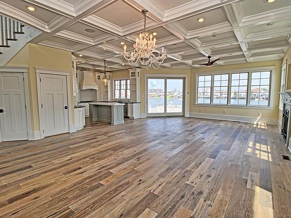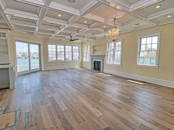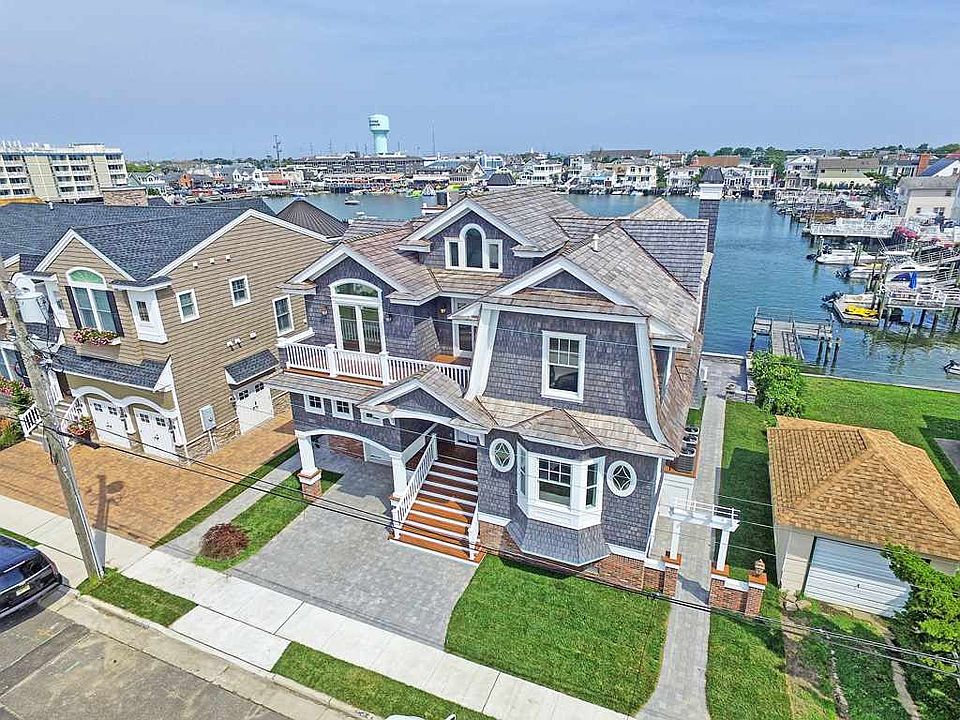 GORGEOUS BRAND NEW BAYFRONT CUSTOM HOME ON SHELTER HAVEN BASIN. Traditional floor plan with wonderful water views and fabulous exterior living on expansive, multi level bayfront decks. All 5 bedrooms have custom tiled ensuite baths. There are beautiful wide plank character oak engineered floors throughout the entire home. The first floor has an expansive bayfront great room with 10 foot ceilings, high baseboards, gas fed fireplace with custom doors, tile and mantle. The kitchen has custom cabinets with contrasting center island, stone tops, high end appliances and beautifully tiled back splash. There is a first floor Jr master suite with ensuite bath; powder room to service the great room and laundry room with outside exit. The sensational elliptical staircase has a unique nautical trim package with port hole windows. The second floor has three additional bedrooms with custom tiled ensuite baths. The fabulous master suite has a brick wall, oversized window with view of the bay and a sumptuous master bath with soaking tub, oversized shower, beautiful tile and double vanity. The elliptical staircase continues to the third floor open bayfront deck with hot tub, fireplace and speakers. Several of the exceptional amenities include stained cedar shake exterior, thick cut cedar shake roof, safety glass deck railings to enhance views, two on demand hot water heaters, three zone central air and FHA heat, distributed audio throughout, gorgeous maintenance free premium decking, stone patio, oversized fixed dock with deep water boat slip. The home is complete and ready for your immediate enjoyment.