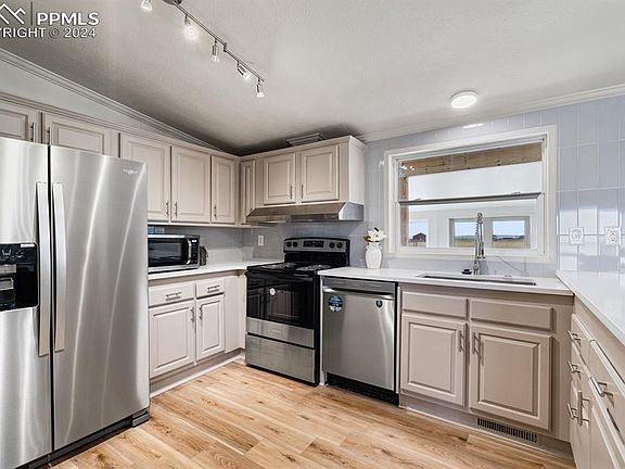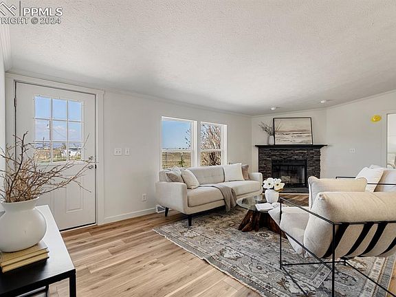 Enjoy this Country Home with all of the city ammenities nearby. This 4 Bedroom / 2 Bath Rancher is Horse Zoned & on a Corner Lot with an Abundant 5.3 Acres. When you walk in, you'll be greeted w/ Vaulted Ceilings, Wood Floors, and Tons of Light. Enjoy entertaining w/ an Open-Concept Kitchen Equipped w/ Quartz Countertops, Clean Backspash, Eat In Country Bar, & Coffee Nook, Large Corner Pantry, SS Stove, SS Appliances, SS Farmhouse Sink, a Built-In Coffee Nook, Recess and Track Lighting, Wood Flooring with Tons of Cabinet and Drawer Storage. In the Living Room, this home has a Wood Burning Fireplace - Captivating 360 Degree Views. Open Concept Dining w/ Walk-Out to the Sun Room! A Flex Space, great for Schooling, Media, Office, or anything else you can think of. When you need to relax, Your sanctuary awaits. Endulge in the Private BR Ensuite w/ a Luxurious Spa with Double Vanity, Stand-Alone Porcelain Tub, Shower w/ Tile & Massive Walk-In Closet with a Dressing/Sitting Nook. 3 Additional Bedrooms w/ Walk-In Closets share a Full Bathroom with tub/shower. Separate Laundry Area & Drop Zone W/ side door & window. Walkout from the Dining or Living Room and Enjoy Breathtaking Views of Pikes Peak. With plenty of room for RV Parking, Corrals for your Horses, Livestock, Toys, & Gardening. This property offers endless possibilities for the outdoor enthusiast, w/ a completely fenced yard. A Large 40X40 Barn & Overhead Door Automatic Door Opener w/ Concrete Floor, Electric, Space for 10 + Cars, & 2 Additional Buildings. Newer Roof, Siding, A/C, Wood Floors throughout all common areas, New Carpet in Bedrooms, Large, Modern Baseboard and Trim throughout, New Lighting, Custom Wood Work and Ship Lap, Enclosed Sun Room. Home boasts privacy & space w/ a Local, Community feel. About a mile west of 1-25. This location is close enough that you'll have an easy commute to either Colorado Springs or Pueblo. About a 15 minute drive to Fort Carson. Ask your Realtor about the incentives!
