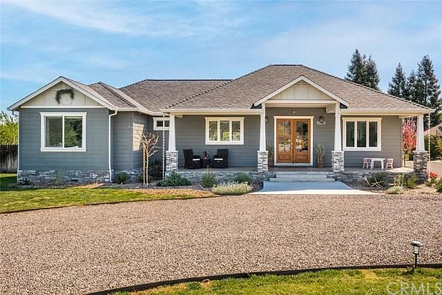 Country Living! Nestled in the peaceful orchards of Durham, this 4 bdrm decorators delight sits on over an acre and features many amenities including OWNED SOLAR. As soon as you arrive, the large circular driveway, stone accents and the nicely sized front porch will immediately catch your eye. Once through the double door entry, you are greeted by an open and bright living room offering a tray ceiling, engineered hardwood floors, a cozy fireplace, built-in cabinetry and an ample number of windows that let the natural light flow in. Dont miss the office space right off the living room. It is the perfect space for an office or playroom. Cook until your heart's content in this amazing kitchen. It features elegant white cabinetry, quartz counters, the favored farm-style sink, gas cooktop with range hood, a pot filler faucet and a large center island with a butcher block counter & breakfast bar. The massive master suite awaits you; offering private access to the backyard, a large walk-in closet and an en suite bath equipped with a large vanity area and tiled walk-in shower with European glass doors. It just keeps getting better. Outside, you will find a nicely sized patio area, a designated garden space where you can grow your own fruits & vegetables & a 35 x 27 Barn. Other amenities include a water softener, surroundsound, and ceiling fans throughout. Located in the quaint town of Durham but only minutes away from Chico, this is an opportunity you cannot miss!