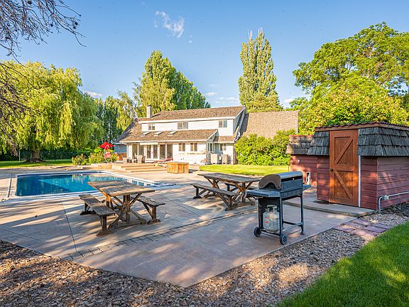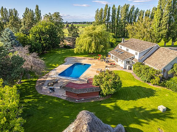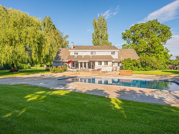 Charming Cape Cod located on 3.8 acres. Complete with 5 beds, 2 baths, formal dining room, great room & living room. The main floor Primary suite includes a large bathroom and tons of closet space. 4 additional bedrooms upstairs & also a full bath(double basins) & office space plus 3rd living space complete the second level. Open concept kitchen & great room w views of the sparkling pool & patio. The outside oasis around the pool offers massive stamped concrete, a poolside restroom and two changing rooms, plus a hot tub make this patio a dream to entertain on. Basketball court, tennis court(needs restoration), stables(need tlc), fenced pasture, 20 plus fruit trees & grapes. Renter pays for power, wifi, and garbage.