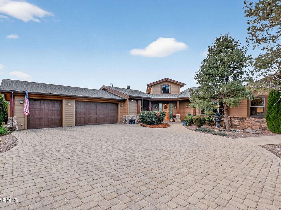 Luxury Single Level Living with Iconic Views in American Ranch! Welcome to 9820 N Clear Fork, where refined living meets true Arizona ranch elegance in the prestigious American Ranch community. Set on 1.06 acres, this 3,400 sq. ft. single level residence offers sweeping Granite Mountain views & an exceptional blend of comfort, space, & style. Inside, vaulted ceilings & a dramatic stone fireplace anchor the light filled living room, framed by a wall of windows that capture the surrounding beauty. The home offers 3+ spacious bedrooms, 3 baths, & an additional 400 sq. ft. flex room—ideal for a home office, studio, or craft space with custom built ins. Designed for both everyday living & entertaining, enjoy time in the inviting family room or step outside to the patio & hot tub. A standout... feature is the separate "cowboy kitchen," complete with a wood burning fireplace, grilling area, & dining spaceperfect for gatherings year-round. Surrounded by manicured landscaping & native plants, this premier equestrian community provides privacy & serenity while remaining close to Prescott amenities. A 3-car attached garage completes the home. In addition, there is a 10' x 16' site built shed with power & overhead space for seasonal storage, a shop, outdoor equipment... just use your imagination. This home seamlessly blends country comfort with refined luxuryan exceptional opportunity for quiet moments or memorable celebrations. A true must see!