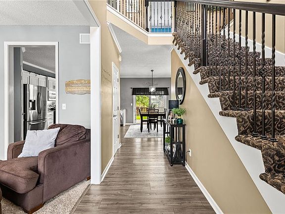 A MUST SEE! This home won't last! Move-in ready, immaculately maintained two-story home with tons of living space, a coveted 3-car garage and driveway, and LOTS of updates and features beyond the norm for this neighborhood. This two-story home has it all! The beautifully landscaped, low maintenance finishes, provide a warm, welcoming entry to your new home. As you enter the home, the main level boasts an open concept, spacious floor plan featuring upscale finishes, soaring ceilings, and many newer updates including luxury vinyl plank flooring, granite countertops, painted cabinets, stainless steel appliances, a walk-in pantry and a gas fireplace. From this level, you will gain access to the large, well-maintained, fenced back yard that includes a deck over the concrete patio, a privacy side fence, a pergola and bonus storage from the attached shed - perfect for relaxing or entertaining. The second floor includes 4 generously-sized bedrooms and 2 full bathrooms. The master suite includes a large bedroom and an en suite bathroom featuring a jetted bathtub, dual vanity, custom onyx walk-in shower with sliding door and 2 huge closets! Not to be missed, the finished basement featuring a huge extra living space with an entertainment area including a bar with tons of seating, a large living room, a half bath and a bonus area that can serve as an extra, non-conforming bedroom, a workout space or additional storage, not including the utility room that offers even more storage area. Located in the sought-after Liberty School District, Benson Place Parkfield offers a prime location near shopping, dining and highway access. Both downtown Kansas City and the KC International Airport are less than 20 miles away. Neighborhood amenities include 2 community pools, a recreation area, a 5-acre lake, a playground, walking trails and over 40 acres of parkland and natural areas. There are too many incredible additions to this house to cover them all. Come see this home before it's gone!