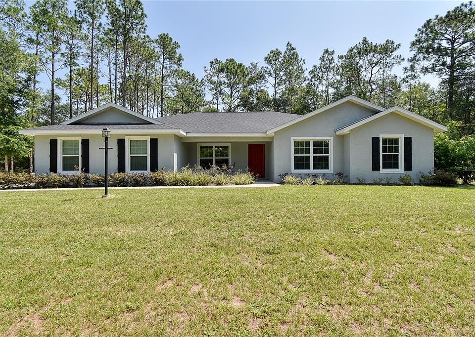 Come enjoy the Florida lifestyle in this light and bright 2020 4-bedroom 2-bath home. This home has great curb appeal with an inviting front porch and private, park like setting on over an acre of land. Features include an open floor plan with LVP flooring throughout home and tile in bathrooms. The large chef's kitchen will not disappoint boasting ample cabinets, a pantry and granite countertops. The split bedroom floorplan features a large master bedroom and bathroom complete with double sinks and a walk-in closet. Take advantage of Florida's outdoor living as you relax on the front porch or back lanai overlooking your spacious private yard. Nestled in the quaint community of Rainbow Springs with access to the Rainbow River, the community offers lots of activities such as tennis, a walking trail, clubhouse, community pool and so much more. Call for your showing today!