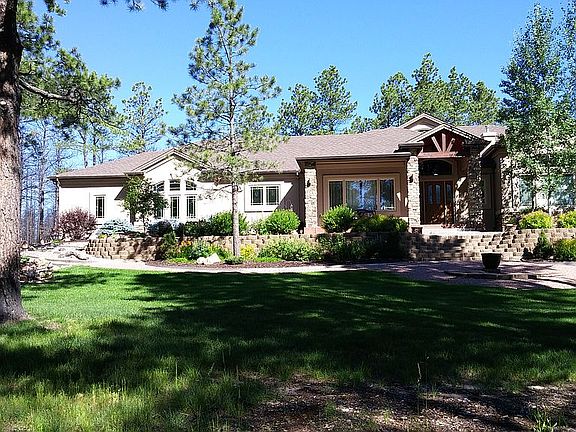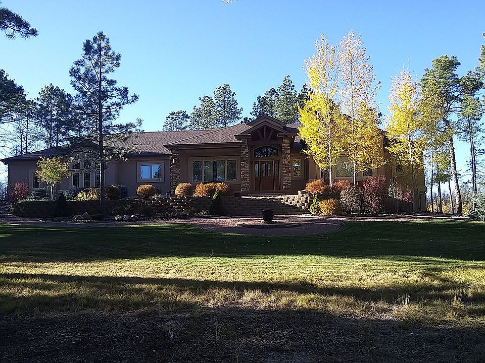 Welcome to this elegant Black Forest rancher on five, treed and meadowed acres. Over 5,000 sf with four bedrooms/four baths with dedicated, main level office w/closet. Backing 1,000 acres of County open space w/walking and riding trails. Incredible quality, main level living, hardwood, granite, tile, 42 in. cabinetry. Great pride of ownership with stacked stone landscaping, fruit trees, garden area. Award winning District 20 schools, paved roads, and quick access to Springs and Denver commute Such attention to detail with hardwood throughout main living areas, large granite island and kitchen bar with glazed cherry cabinets. Formal dining plus great room/formal living with large gas fireplace w/custom European style mantle. Sunroom off of breakfast nook overlooking the land and open space. Amazing main level laundry w/sink & cabinetry. Main level master with luxurious 5 piece bath with walkout to decking possible. Office and 1/2 bath completes the main level. Downstairs walkout has three bedrooms, two 3/4 baths plus family and rec areas. Wet bar easily possible plus future media/theatre room. The oversized, heated, finished three car garage(bring the BIG trucks) w/ generator hook-up plus an additional shed and metal outbuilding for 2 car additional parking or workshop area. Beautifully landscaped w/garden areas, apple trees, aspen, cottonwoods, spruce, & old growth Ponderosa (mitigated). Perimeter, doggie fenced with white vinyl & split rail, plus yard area. Zoned for 2 horses with riding/walking trails right out the front door (Foundation is in process of complete mitigation). Award winning District 20 schools. A beautiful property to view!