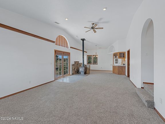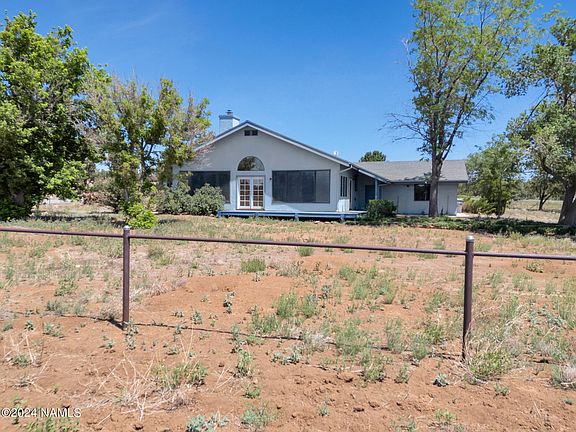 Discover your dream Equestrian property. 2.5 Acre Estate with rural serenity and convenient access to riding trails and cinder dunes. Horse set-up is a 5-Stall barn, 2-covered pens, hay storage, tack room fenced turn-outs or riding area. This 3-bed 2-bath home has vaulted ceilings, beautiful tile work, new paint 2024, and new carpet 2024. Property is nestled in the tranquil countryside just minutes from down-town Flagstaff. The large master in-suite has a sitting area, 2-car garage with built-in cabinets. Enjoy a view of the peaks and watch your horses play from your wrap around porch. Don't miss your the chance to own this home.
