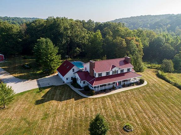 CUSTOM ESTATE HOME ON 164 ACRES This lovingly maintained 5-bedroom, 5.5-bath country estate home at Bloomington's southwest edge sits on more than 164 acres of fenced rolling and wooded hills. No detail was overlooked in this 1994 6,400+ square-foot John & Larry Ingram-built treasure, notable for understated taste and quality construction. The two-story home with large walk-out basement and 3-car garage features four fireplaces, and other stunning details, such as built-in wood cabinetry and millwork, window seating, pocket doors, maple wood floors and generous closets and storage. In addition to the gracious window-filled living room, family room, large formal dining , the main floor offers a guest bedroom and full bath. The eat-in gourmet kitchen is accented by wood beams, cherry cabinets and professional-quality stainless appliances. The home also has a large laundry/hobby room and mudroom. The home's upper level offers a spacious master bedroom with recently renovated bath featuring a soaking tub and separate shower and two walk-in closets, two bedrooms joined by a jack-and-jill full bath, as well as an additional en suite bedroom. The partially finished basement has a den with fireplace, a rec room and full bath, and generous unfinished space for storage or future use. Framed by a large front porch overlooking a fishpond, and expansive back deck with in-ground pool, the setting is perfect for entertaining. This rare property, suitable for horses, hobby farming and nature lovers, includes a second home currently rented, large barn, and outbuilding