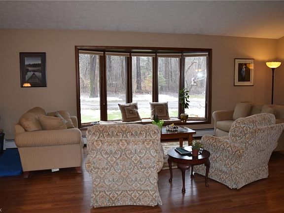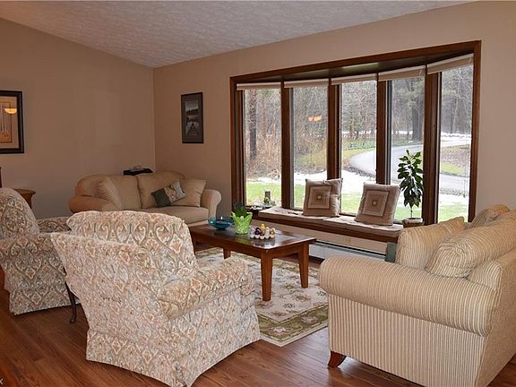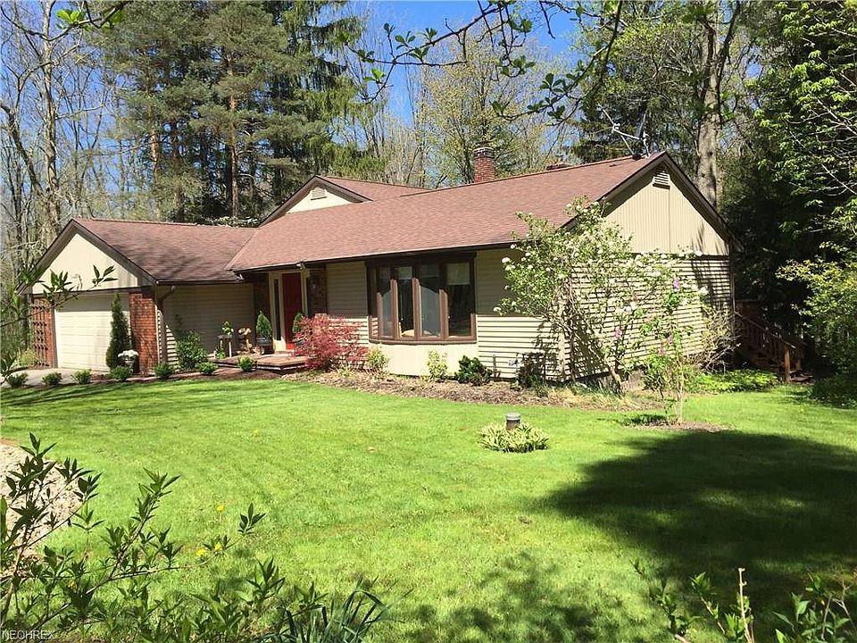 Beautifully maintained & updated 3 Bedroom & 3 full Bath 4-level home secluded on nearly 4 private wooded acres! This home is deceiving and much larger than appears from road with over 2600 finished sqft of living space! Foyer entrance welcomes you into the vaulted Living & Dining Room with wood floors. Eat-in Country Kitchen includes plenty of cabinet & counter space, all appliances stay and access to freshly stained deck. Master Bedroom with huge walk-in closet, hardwood floors & remodeled Private Bath with oversized ceramic shower. Finished lower level Rec Room with brick gas fireplace, Office/4th bedroom, laundry area and sliders to backyard to enjoy peaceful wooded views surrounded by mature trees and manicured landscaping. Many updates throughout including new furnace in 2013. Basement has been professionally waterproofed. 2+car attached garage & paved drive. Chardon Schools.