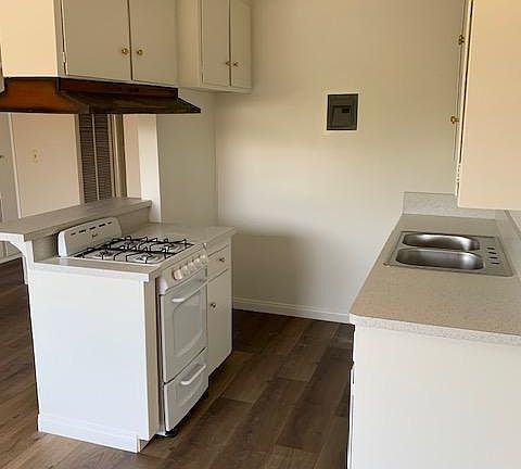 Upstairs 1 bedroom in a quiet 10 unit apartment complex close to the Tweedy Mile. New vinyl wood plank flooring throughout apartment. New kitchen counters and stainless steel sink. New bathroom wall tile, toilet, tile flooring. New paint in every room. Wall-to-wall bedroom closet and hall closet. Gas stove.
