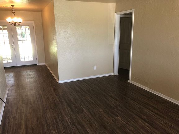 Very nice 4 bed 1.5 bath home located across the street from Carl Albert High School. The home has wood floors and ceramic tile throughout the house. Every room has a ceiling fan. Washer and dryer hookups. Appliances include a stove and dishwasher. Central heat & air. Minimum credit score of 600, no evictions or judgements, no felony or drug arrests.