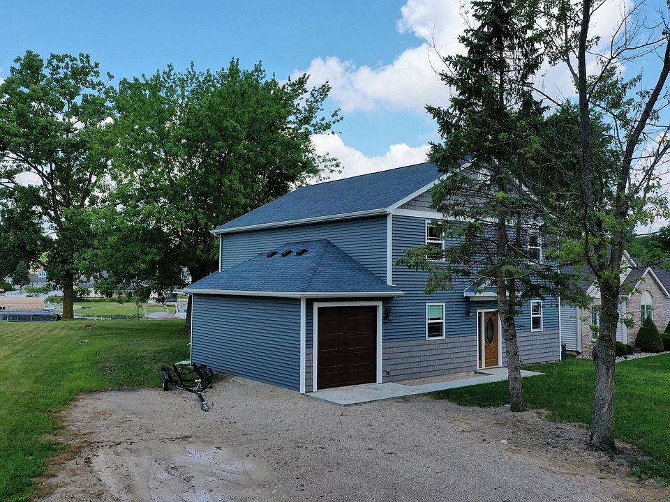 What a FIND! This 5-bedroom 3 Full bath home is only 3 years old that comes with almost everything in it!!! This home is on a channel of the great Wawasee Lake for that lake life living. When we talk about entertaining, the kitchen is what comes to mind. The 6 ft granite island will share many memories at the lake. A wide open layout with 10 ft ceilings makes this home feel large and spacious. The jack and jill bathroom makes every room feel like a master. Outside you have a stamped patio and a deeded pier with a 2-jet ski lift that stays. Pier 11 of Marine Gardens has an Esplanade in front of the home on the waterside. You get another lot (679) on Skyline drive with the purchase. Bring your imagination for that extra lot. You should fall in love with this newly built home with an open floorplan and access to Lake Wawasee from your channel.