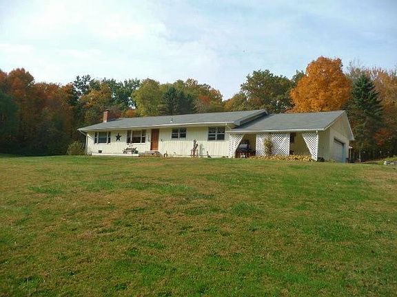 Wonderful ranch style home on fantastic picturesque setting. Squeaky clean first floor living on over 5 partially wooded acres perfect for the wildlife lover and/or avid hunter. Two woodburning fireplaces and rec room in basement, nice oak flooring! Call today for your private showing.
