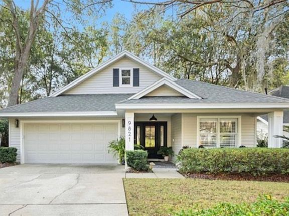 Haile Jewel... quality renovation with premium finishes. 3/2 beautifully renovated top to bottom, turn key stunning home. Jeffrey Wilde built home in highly desirable Ashleigh Circle. Nestled in a quiet cul-de-sac with gorgeous wooded views behind the home. Open, airy floor plan with oversized windows to let nature in. New flooring, plantation shutters, brick paver patio, paint, lighting, etc. kitchen and baths newly remodeled with custom white oak cabinets and white quartz. See photo for list of extensive renovations in 2024 and 2025. Back yard was just fenced, NEST thermostat. Mid Century Modern fireplace is stunning. This home feels warm and inviting yet mid century modern vibe. Low HOA includes lawn maintenance in front and lawn spray. Come live the Haile life style with walking and bike trails, Saturday morning farmer's market and private country club if you love pickleball, tennis, gym and golf! Great location and community.