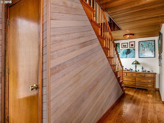 Don't be fooled by the very private facade: 3 o'size garages & hidden front porch mask a dramatic interior. A gracious entry hall opens to dramatic 2-story livingroom w woodstove in stone nook, an open kitchen & main floor den. Big windows look out on evergreens, skylights bring in lots of light. Extensive use of wood & tile throughout. Large rooms upstairs include office/non-conforming 3rd bedroom o'looking livingroom. Unique spa bath