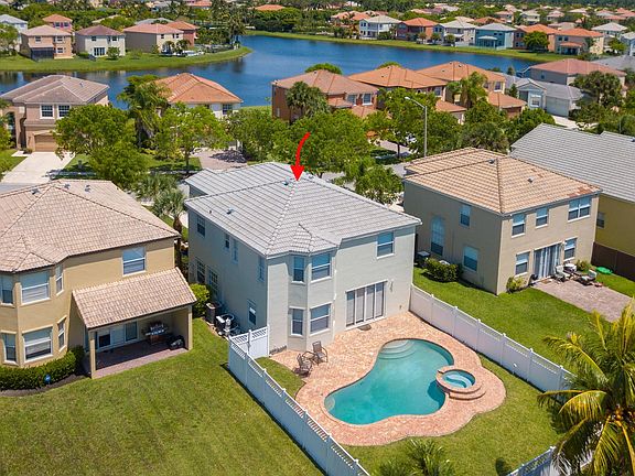 Ideal Wellington location! Sought after Cordova 5 Model with the pool in Wellington's premier gated community Olympia. Make this your own paradise and enjoy large fenced backyard with old Chicago brick paved pool deck. Newly painted exterior. Tiled downstairs, wood flooring upstairs. Renovated kitchen is spacious and offers open flow to family room, with dark wood cabinets, stainless steel appliances, granite counter tops and large center single level island. Kitchen nook for a busy family to enjoy unobstructed conversation and dining area. All bedrooms are located upstairs including the master suite, with walk-in closet, master bathroom with dual sinks, shower and separate tub. Don't miss the opportunity to live in subdivision with annual block party for the past 10 years! Home warranty