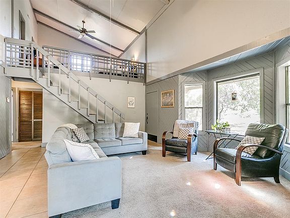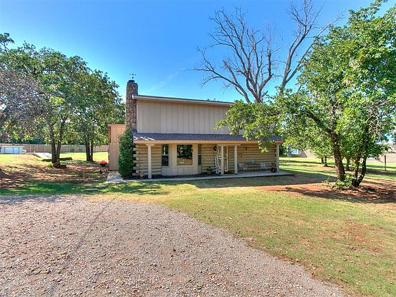 Charming log cabin-style home on a picturesque 1.51-acre lot. This 3 bedroom, 2 bath home provides ample space for relaxation and privacy. Includes cozy loft bedroom suite and an open-concept living area with vaulted ceilings. The vast lot is adorned with towering trees, creating a tranquil ambiance and plenty of space for outdoor activities, gardening, and bonfires. 2-car detached garage, storm shelter, hoop house, shed, and fire pit area. New septic system, board and batten siding, exterior and interior paint, and carpet. Seller is replacing the roof this month. Located in Logan County and Edmond Public School District. Don't miss this opportunity to own a piece of paradise that combines the tranquility of nature with the convenience of city living. Welcome home.