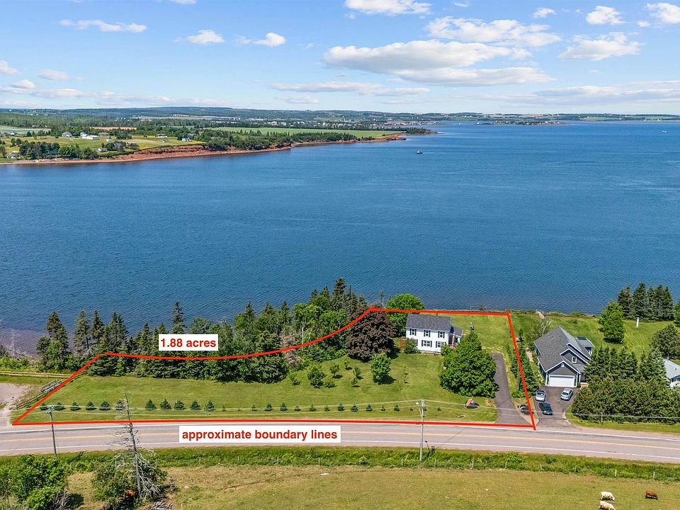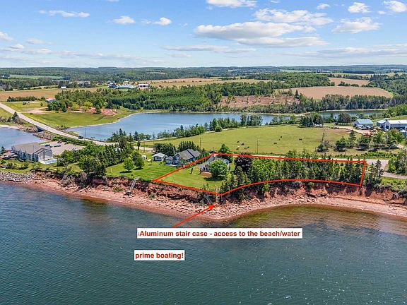 Stunning 5-bedroom, 2-bathroom waterfront home on 1.88 acres, offering over 400 feet of waterfrontage, privacy with mature trees, fruit trees, and sweeping views that will never get old! The main level was fully renovated down to the studs in 2017 with extensive updates including windows, electrical, siding, doors, flooring, kitchen, bathroom, trim, paint, and both front and side decks. Additional features include a propane fireplace, heat pumps, a high end propane Generac generator system, outdoor shower, new driveway, and appliance upgrades. Inside, the main level offers two bedrooms with closets, a 3/4 bathroom, a spacious kitchen, and an open-concept living/dining area with expansive windows showcasing water and dune views. A truly unique feature of this property is the upper level, which is only accessible through a separate exterior entrance-creating a rare opportunity for added privacy or rental potential. This level includes three bedrooms, a full bathroom, kitchenette, and a combined living/dining area with access to an upper deck offering unobstructed views you wont soon forget. The basement is unfinished and houses the laundry and lots of storage space! Located on a public road with easy access, the high bank frontage is ideal for boating, seadooing, and water activities, with aluminum stairs providing access to the shore. Perfectly situated only 10 minutes to some of PEIs finest golf courses, Cavendish beaches, and local restaurants. Just 20 minutes to Kensington, and approximately 35 minutes to both Summerside and Charlottetown. Whether youre seeking a year-round residence, seasonal escape, or investment property with income potential, this one-of-a-kind waterfront home offers a rare blend of space, updates, and unmatched views. Properties like this dont come along often.