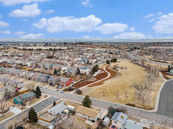 Enjoy the sunsets from this property with its west facing view of Tuck Ditch park right across the street! Inside you'll find a large living room and kitchen perfect for entertaining. The kitchen features 42-inch cabinets with black appliances and eat-in space. Finishing the main floor are two bedrooms plus bath. The basement includes a recreation room plus adaptable space currently used as an office, along with two more bedrooms, bath, and laundry. Location provides quiet yet convenient access to shopping and I-25. View today!