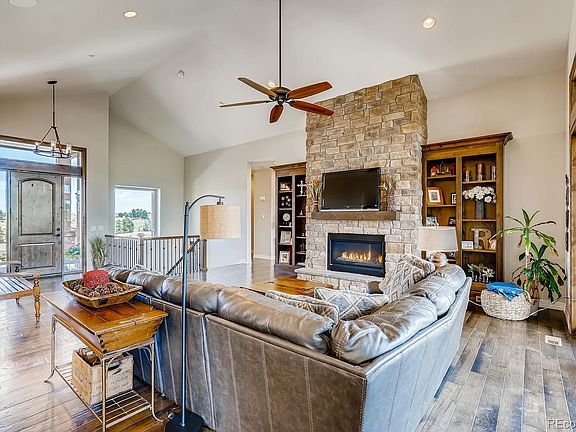 This bright and beautiful custom home boasts natural light and upgrades throughout. From the moment you walk in, you will notice a spacious and open great room offering a vaulted ceiling, custom hardwood built-ins centered around a gas fireplace with stone surround and a hardwood mantle. Flow into the gourmet kitchen, which offers Fantasy Brown marble countertops, 42 inch hardwood crown molded cabinets, breakfast nook, under island cabinets, walk-in pantry and stainless steel appliances. This kitchen is any chef's dream! The main floor master offers vaulted ceilings, views from the deck, as well as a custom walk-in closet. Relax at the end of a long day in a wonderful 5-piece bath. With a soaking jet tub, dual sinks, and steam shower, unwinding is easy. On the main floor, you will also find a secondary guest suite, private office with French door entry, custom mudroom with built in "cubbies", and large laundry room with plenty of cabinet space. The basement rec room is the perfect place to entertain all of your guests. With the wet bar offering quartz countertops, 42 inch crown molded hardwood cabinets, hardwood floors, and an entertainment space. The basement also presents a workout space, secondary laundry hook ups, and storage galore. Guests will enjoy one of three secondary bedrooms in the basement, each one boasting it's own en suite bathroom and walk-in closet. Enjoy barbecues in the outdoor space, whether on the covered deck or covered patio, there's a space for everyone. Don't miss this opportunity to live in this premier custom home community!